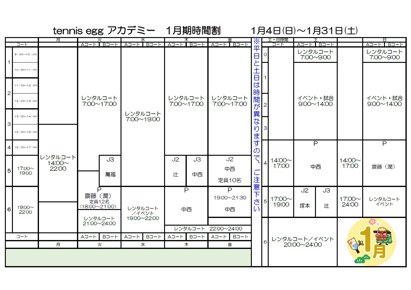 アカデミーコートのレンタルコートのご予約方法が変更になります。